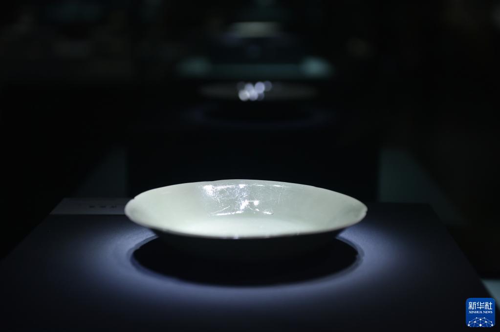 這是6月10日在鄭州大象陶瓷博物館拍攝的展品青瓷盤。