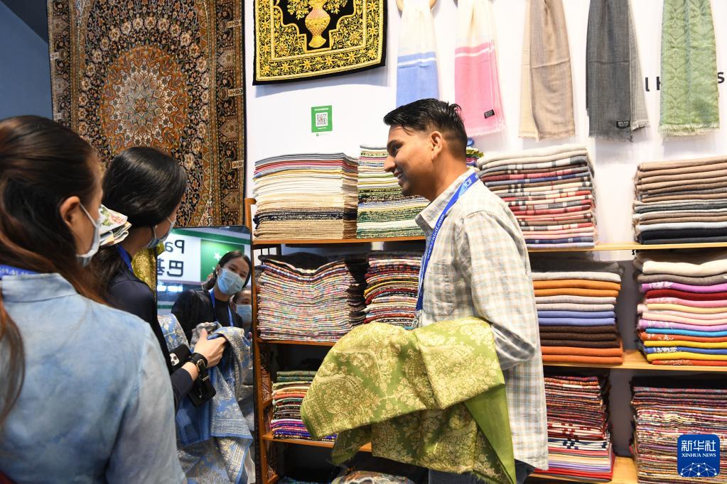 6月9日,在文博會“文旅消費館·一帶一路國際館”尼泊爾展臺,觀眾在選購特色商品。