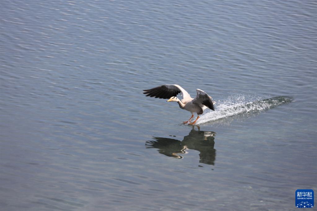 這是6月9日在蒙古國庫蘇古爾湖拍攝的斑頭雁。