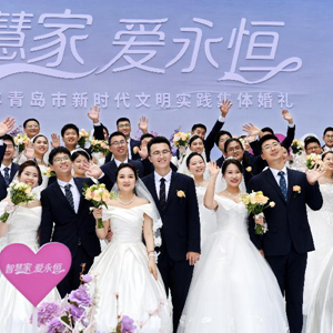 當日,“智慧家 愛永恒”——2023年青島市新時代文明實踐集體婚禮舉行,38對新人共同許下“恩愛永遠 相伴一生”愛的承諾。近年來,青島市將節儉家風與文明習俗相結合,大力提倡“喜事新辦、新事簡辦”,引導人們積極踐行時代新風。