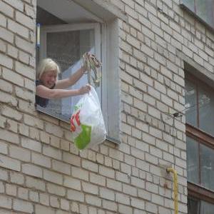 6月9日,一名水利工作人員在赫爾松市被洪水淹沒的街道測量水位。