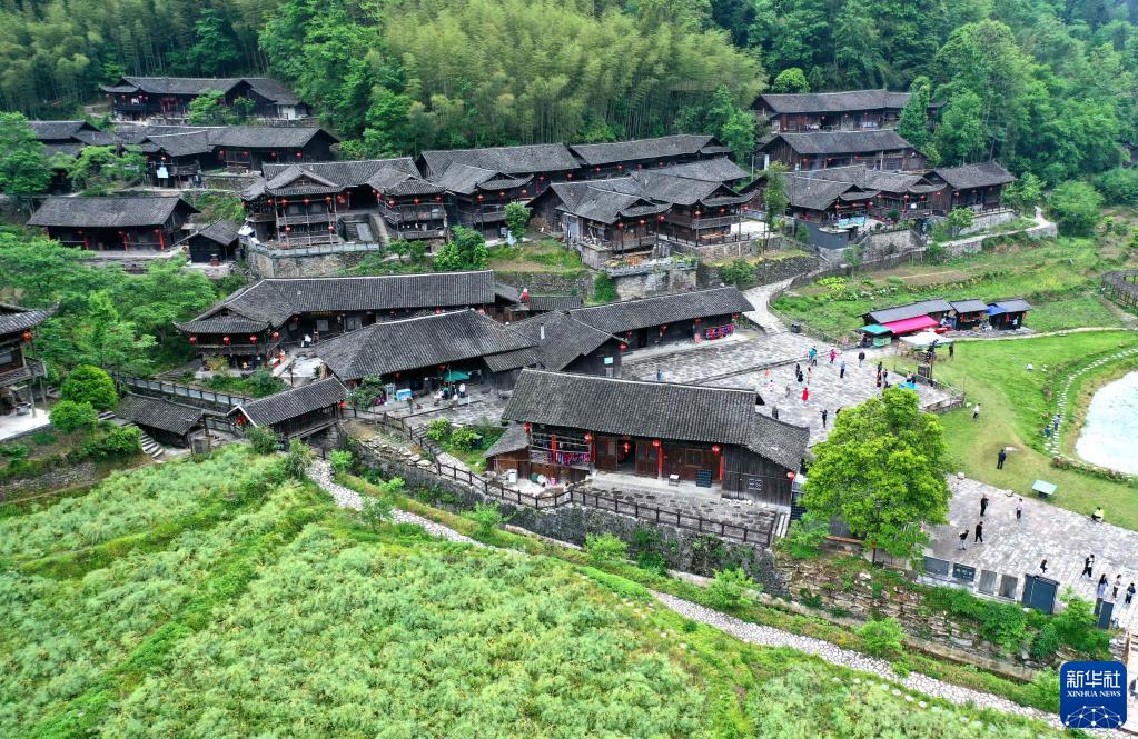 位于湖北省宣恩縣沙道溝鎮的彭家寨古吊腳樓群歷史悠久,吊腳樓保存完好,古樸雅致,是當地民俗文化旅游的熱門打卡地(5月2日攝,無人機照片)。