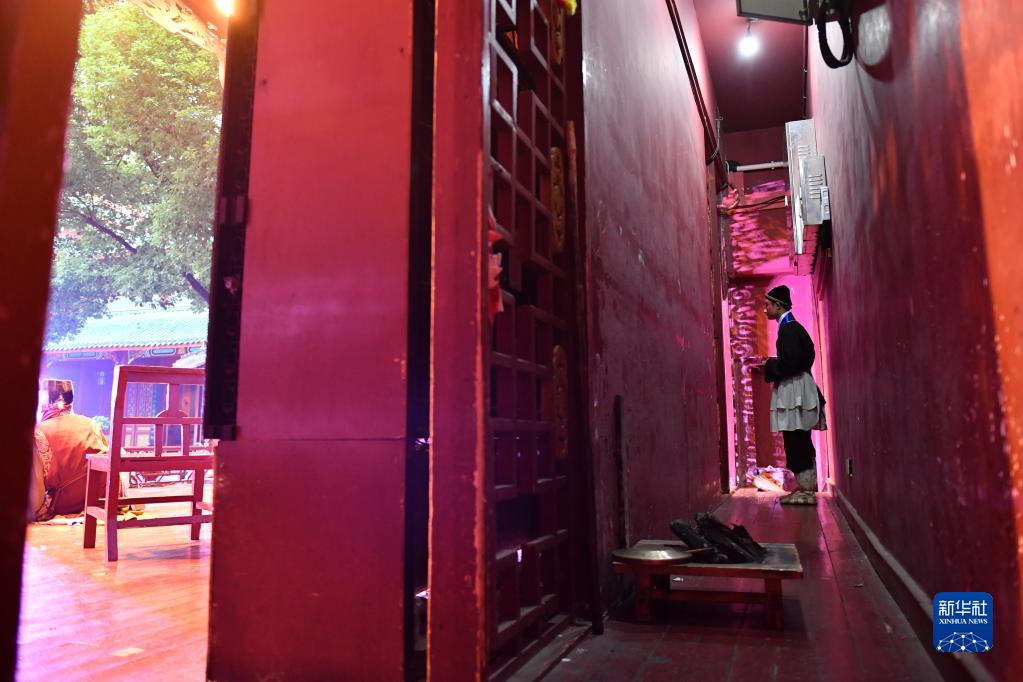 6月5日,在長沙市坡子街火宮殿,長沙市花鼓戲保護傳承中心的演員在舞臺候場。