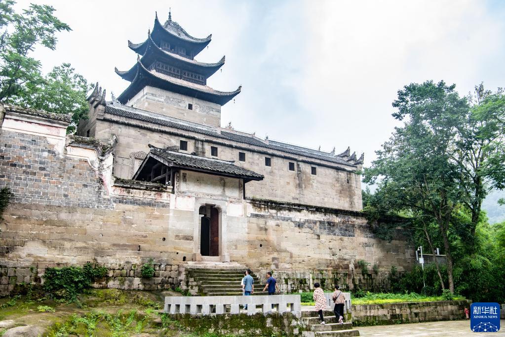 6月8日,在位于重慶市云陽縣鳳鳴鎮的黎明古村,游客在參觀游覽彭氏宗祠。黎明古村是中國傳統村落,當地依托全國重點文物保護單位彭氏宗祠和彭氏民居群的文化資源和當地的綠色資源,推動古村整體保護利用和良性發展。