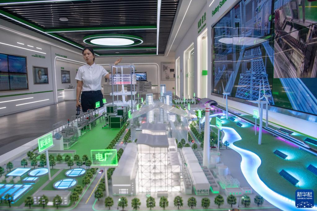 6月6日,在位于重慶市萬州區的萬州綠色智造賦能中心,工作人員在介紹為企業定制的綠色節能方案。該中心是重慶市第一個專注綠色賦能的平臺,著力為工業企業提供創建零碳工廠、零碳供應鏈、數字化工廠和智能化工廠的整體解決方案,助力制造業高端化、智能化、綠色化發展。