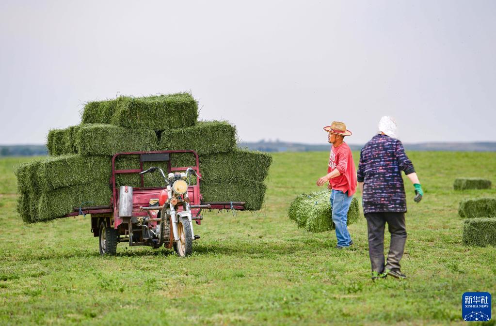 進入6月,內蒙古自治區鄂爾多斯市鄂托克前旗大面積種植的紫花苜蓿進入了成熟收獲期,當地種植戶搶抓晴好天氣展開收割,確保穩產豐收。近年來,該旗借助高效節水技術,持續打造優質牧草基地,種植紫花苜蓿、燕麥草等牧草品種,每年加工干草和青貯飼料超過80萬噸,除供應當地養殖企業外還銷往內蒙古各地,帶動了種植戶增收。