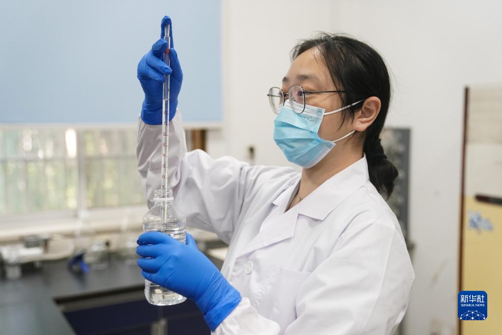 6月9日,常熟市城西污水處理廠化驗人員在取樣。