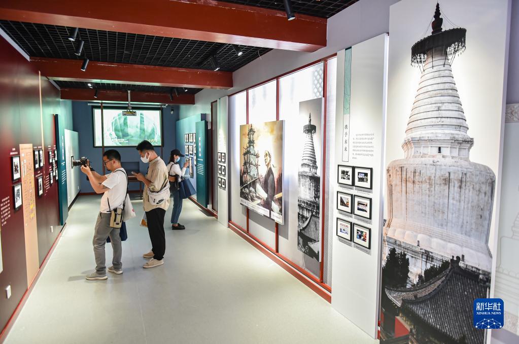 6月10日,2023“文化和自然遺產日”北京市主場活動暨北京白塔文化周開幕。觀眾在參觀“映像白塔——歷史鏡頭中的妙應寺”展覽。