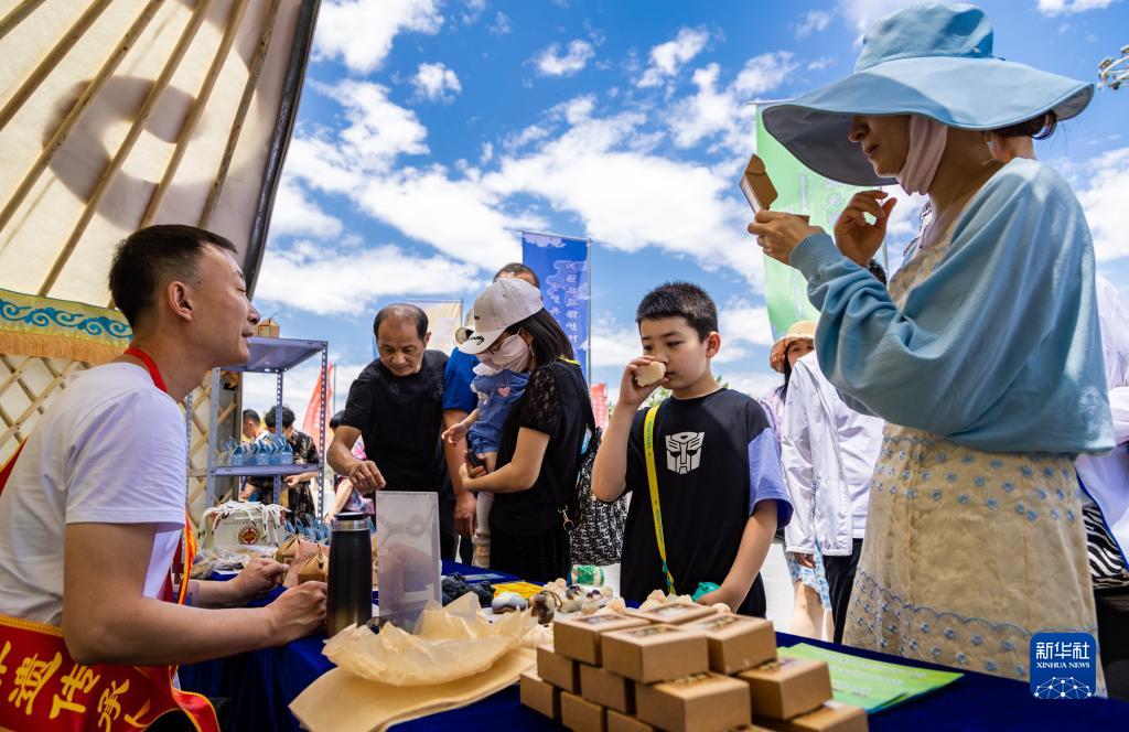 6月10日,游客在呼和浩特市玉泉區大召歷史文化廣場“內蒙古非遺集市自治區主場活動”上選購非遺文創產品“傳統羊脂皂”。