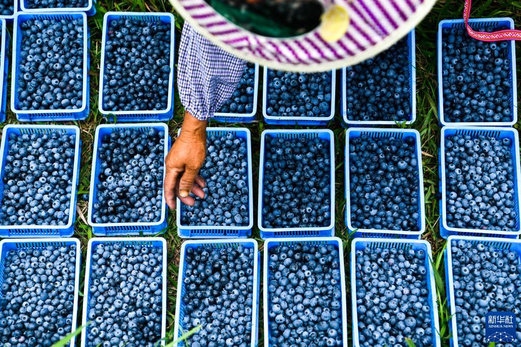 近日,貴州省黔東南苗族侗族自治州麻江縣8.5萬余畝藍莓進入采摘期,果農和企業忙著采摘藍莓鮮果和加工藍莓產品,供應市場。麻江縣1999年開始栽培藍莓,藍莓已成為麻江“一縣一業”主導產業和國家地理標志保護產品。