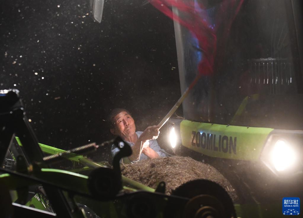 麥屑飛舞,煙塵四起。遠遠望去,在深夜的麥田里來回穿梭的收割機,像一團時大時小的“火球”在滾動。雖然視野遠不如白天,但對于有著二十多年“駕齡”的村民袁榮鵬來說,沒什么大不了。因此,村支部書記把最難收割的地塊交給了他。