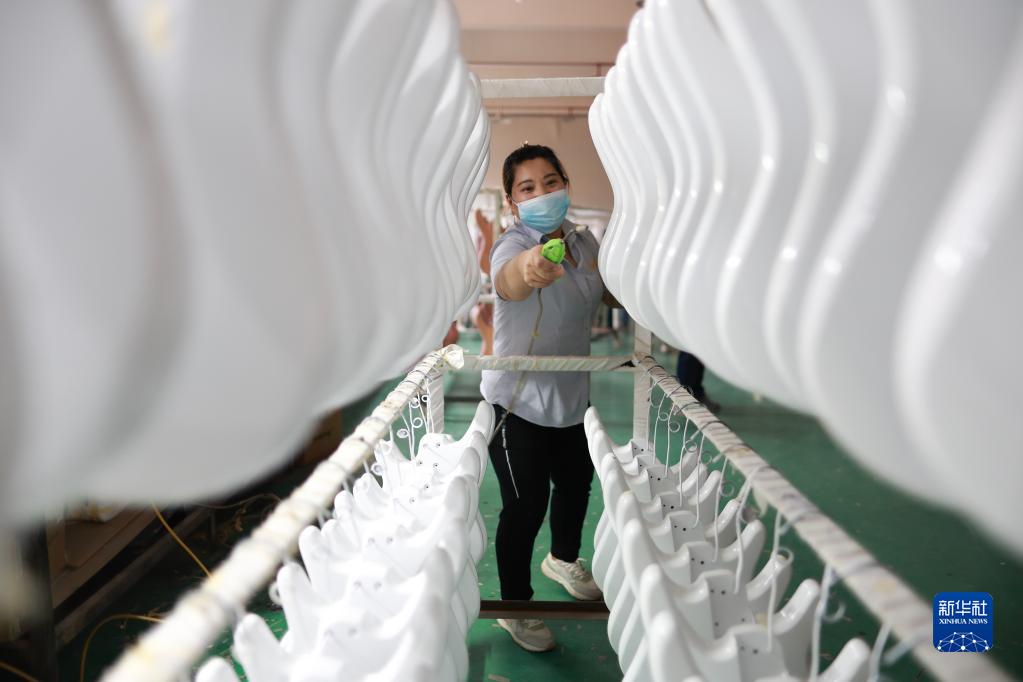 工作人員在正安吉他產業園內制作吉他(6月7日攝)。