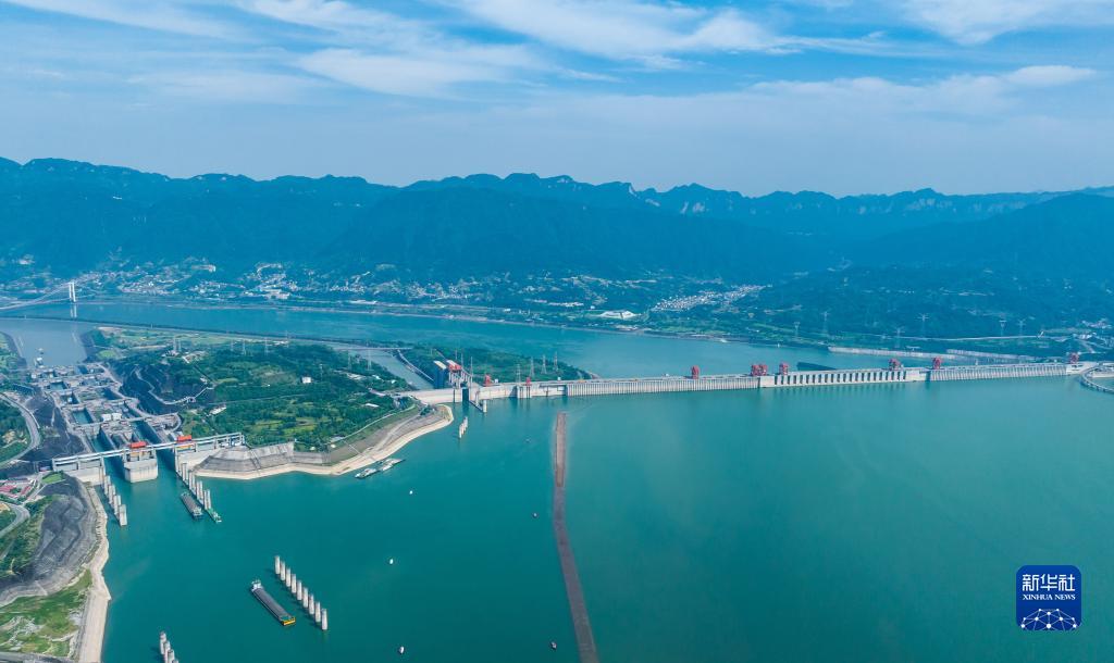 6月10日,船舶有序通過三峽雙線五級船閘(無人機照片)。