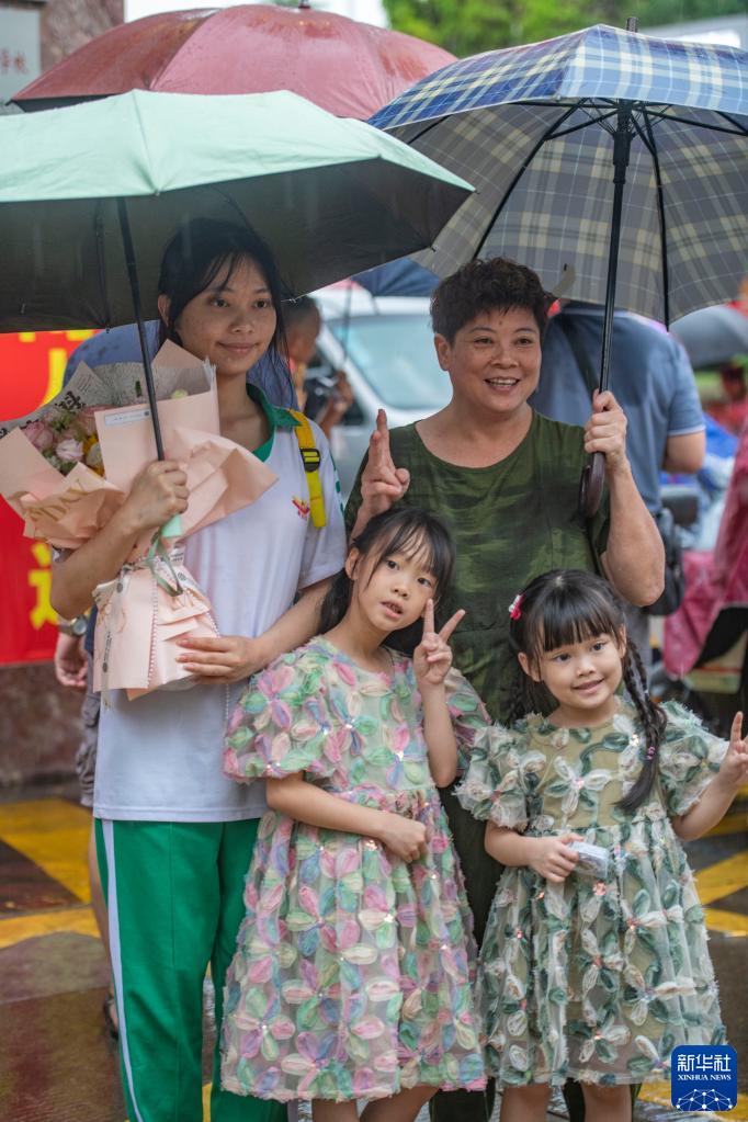 6月10日,在海南省瓊海市,考生與家人合影留念。