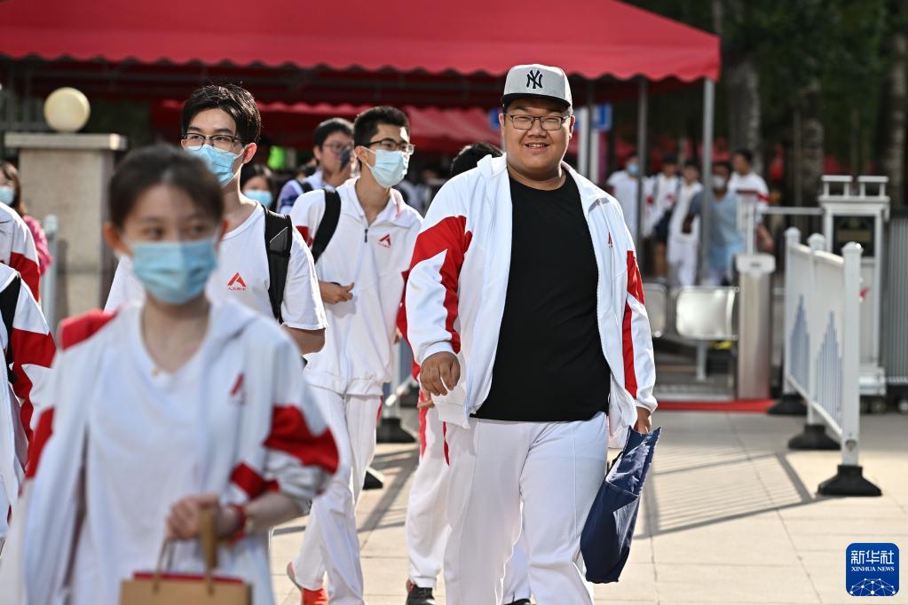 6月10日,在北京人大附中考點,考生在考試結束后走出考點。
