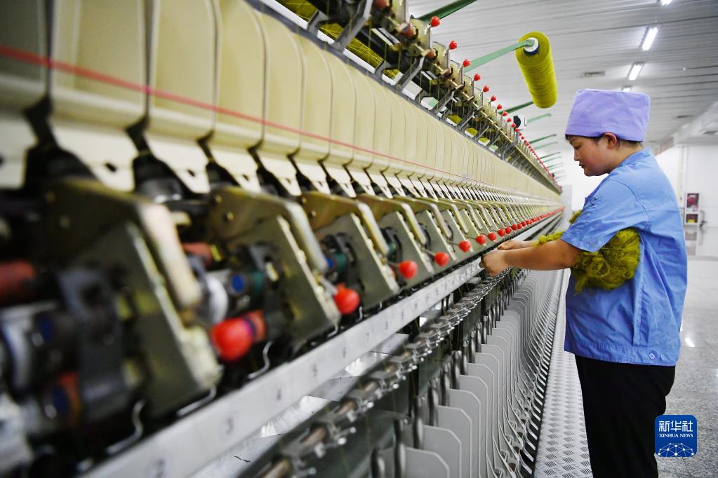 6月10日,工作人員在寧夏靈武羊絨產業園區一家羊絨加工企業調整設備。