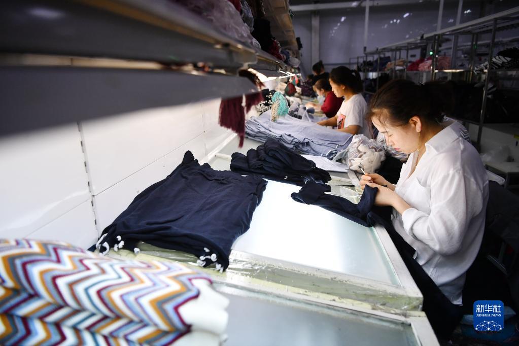 6月10日,工作人員在寧夏靈武羊絨產業園區一家羊絨加工企業制作羊絨成衣。