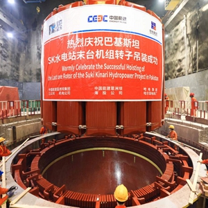 由中國能建葛洲壩集團投資建設的巴基斯坦蘇吉吉納里水電站10日完成最后一臺機組轉子吊裝。蘇吉吉納里水電站位于巴基斯坦西北部開伯爾-普什圖省曼塞赫拉地區的昆哈河上,是中巴經濟走廊優先實施的重點項目之一。