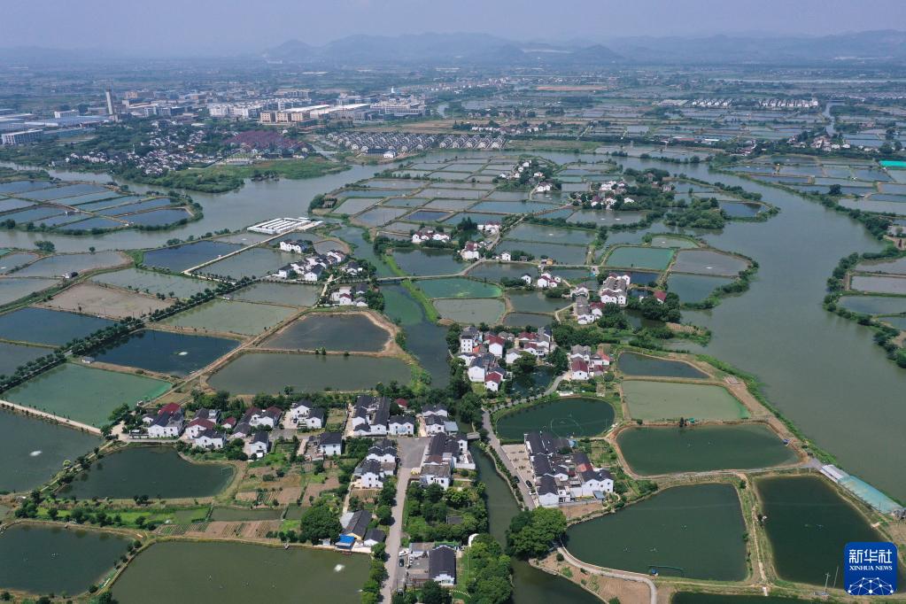 6月9日拍攝的浙江湖州市南潯區和孚鎮新荻村(無人機照片)。近年來,新荻村大力發展水文化、漁文化、菱文化,結合自身特色發展休閑鄉村旅游,打造美麗鄉村升級版。