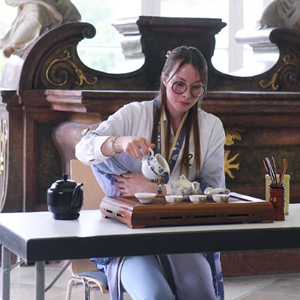 6月10日,在奧地利維也納大學,選手馬甜甜在才藝表演環節表演茶藝。