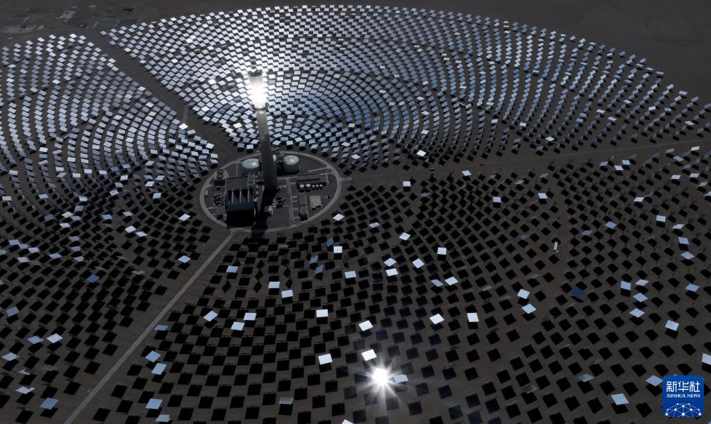 這是6月11日在海西蒙古族藏族自治州格爾木市拍攝的一座光熱電站(無人機照片)。