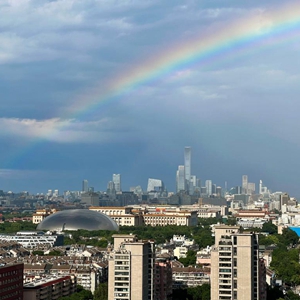 6月11日在北京宣武門附近拍攝的彩虹(手機照片)。