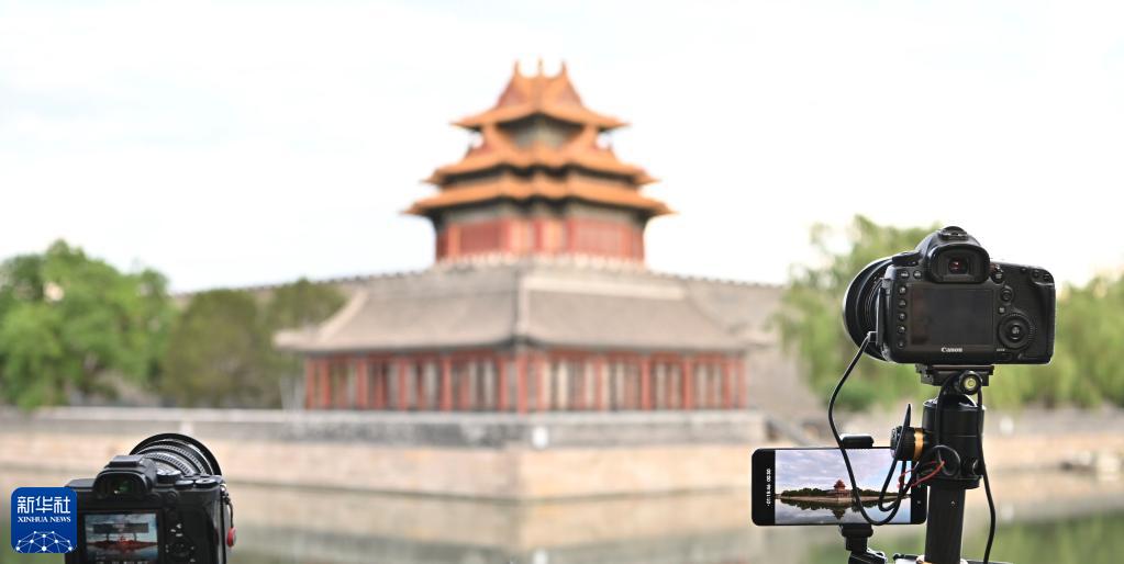 6月11日,攝影愛好者使用相機和手機拍攝北京故宮角樓。