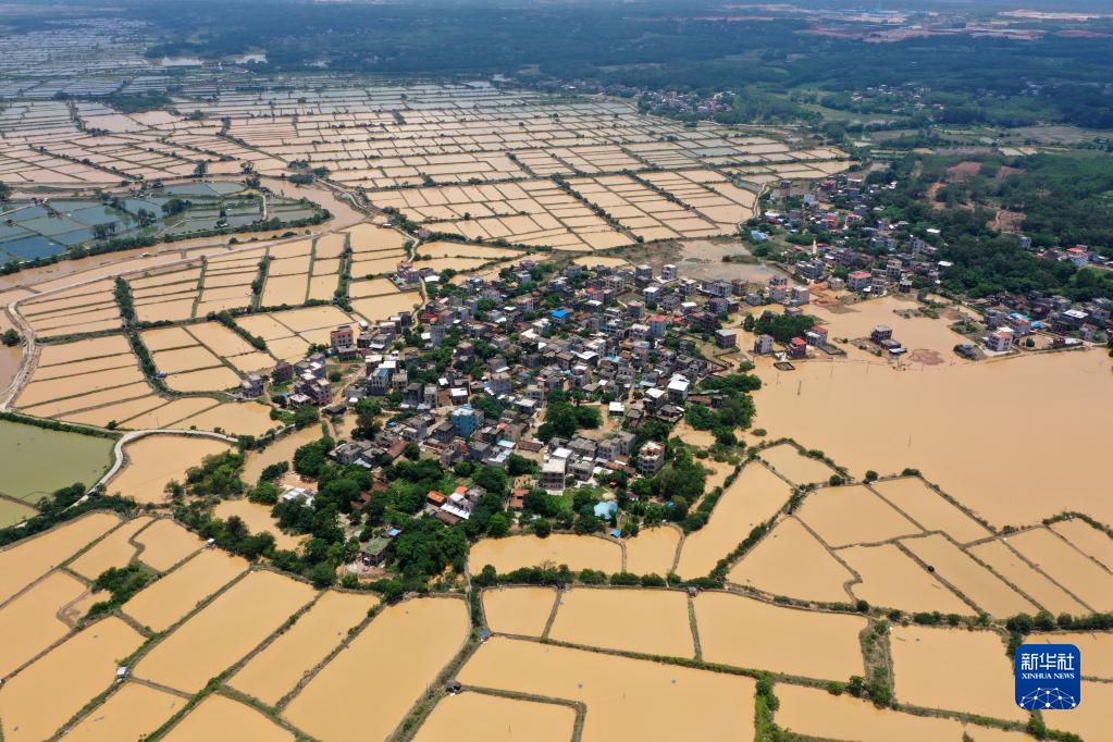 廣西合浦縣白沙鎮受強降雨影響的村莊(6月11日攝,無人機照片)。