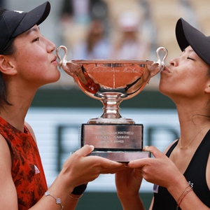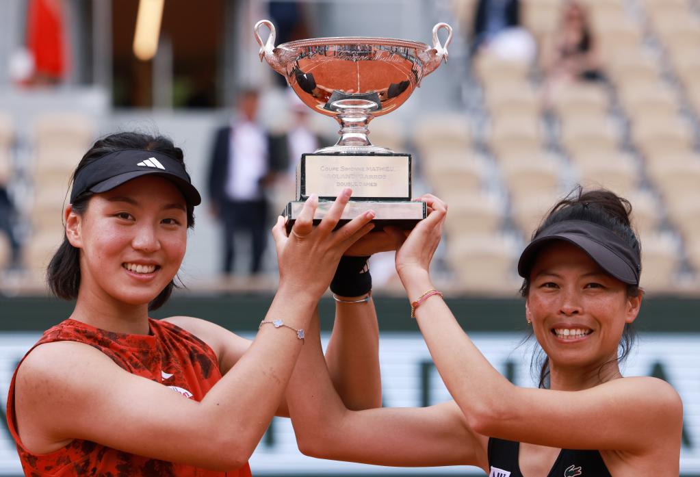 當日,在2023法國網球公開賽女子雙打決賽中,王欣瑜(中國)/謝淑薇(中國臺北)以2比1戰勝費爾南德斯(加拿大)/湯森(美國),奪得冠軍。
