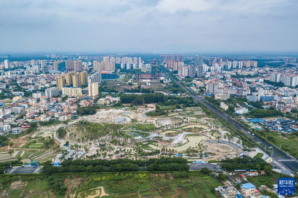 6月10日在海南省東方市拍攝的建設中的福民湖(福民公園)(無人機照片)。