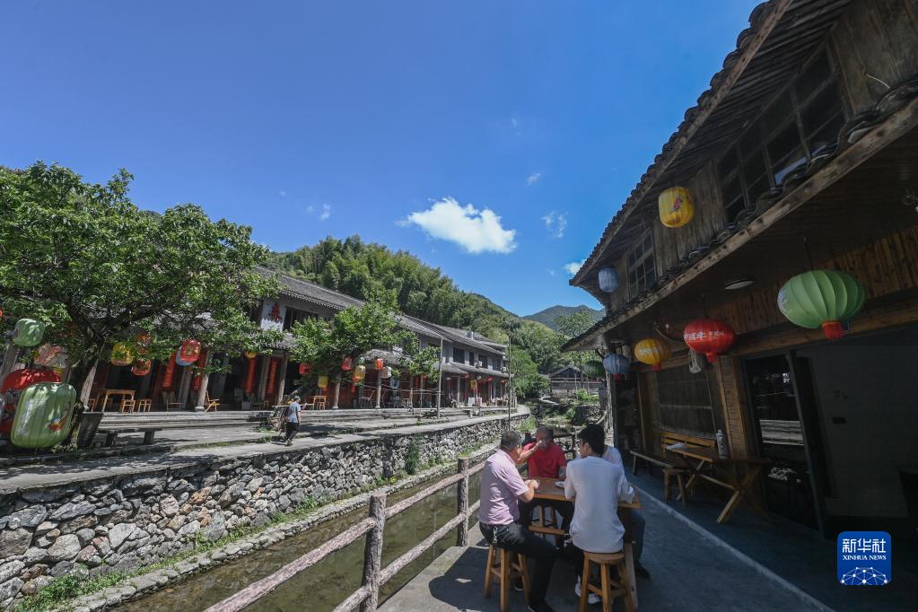 人們在浙江臺州黃巖區嶼頭鄉布袋坑村的溪水旁喝茶(5月30日攝)。近年來,嶼頭鄉堅持黨建引領,以全域旅游和美麗鄉村建設為重要抓手,引進文化創意團隊,為鄉村旅游注入更加年輕化的元素,推進特色民宿以及布袋山饅頭、溪坑魚等農特產品的發展,帶動鄉村振興和百姓共富。