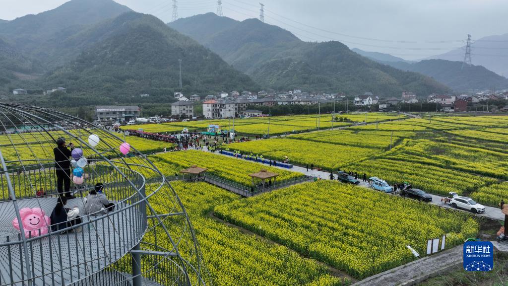 在浙江杭州臨安區青山湖街道郎家村“共富稻田”,游客觀賞春日美景(4月1日攝)?!肮哺坏咎铩倍ㄎ欢喙δ芴飯@農旅綜合體,陸續打造了妙哉花園、稻田觀光道、稻田餐廳、稻田茶吧等鄉村旅游特色節點,吸引城市居民前來體驗戶外農田生活。