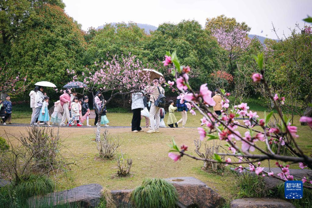 游客在浙江杭州丁蘭街道皋城村的桃園內游園賞花(3月25日攝)。近年來,杭州丁蘭街道皋城村在改善村容村貌、建設美麗鄉村的基礎上發展鄉村旅游業,促進鄉村文旅融合。