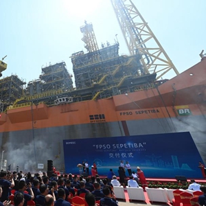 當日,海上浮式生產儲卸油船(FPSO)“SEPETIBA”輪在天津完成交付并將于近日離港啟運巴西。