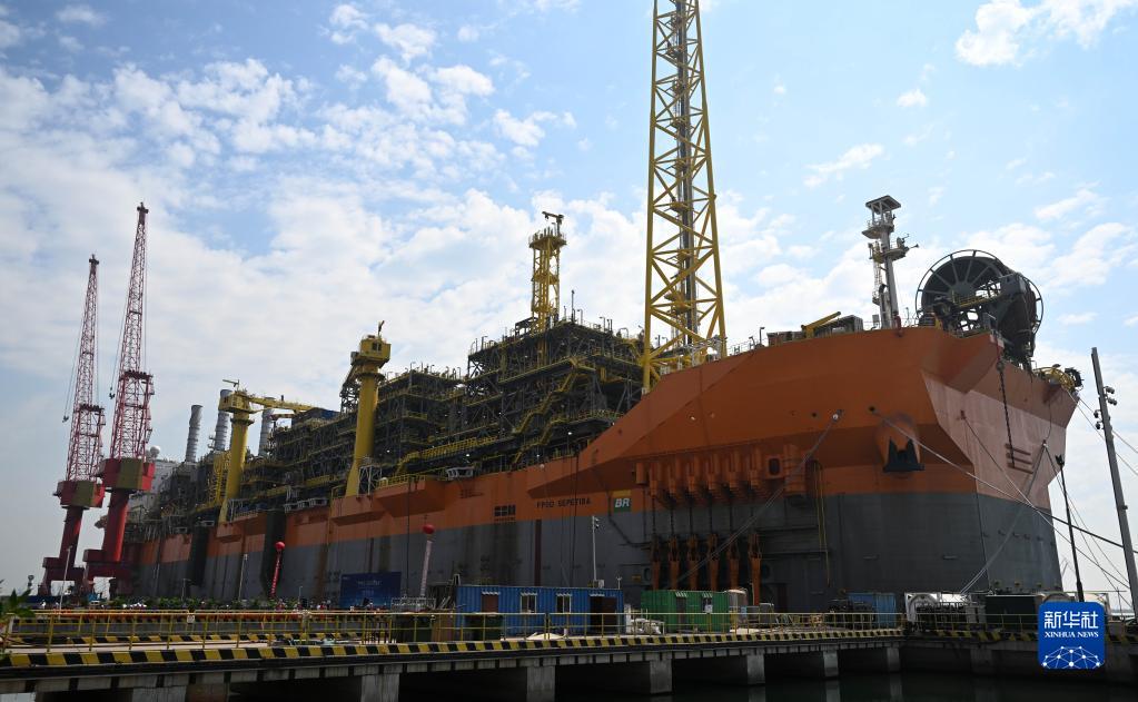 這是6月12日拍攝的??吭诖a頭的海上浮式生產儲卸油船(FPSO)“SEPETIBA”輪。新華社記者 趙子碩 攝