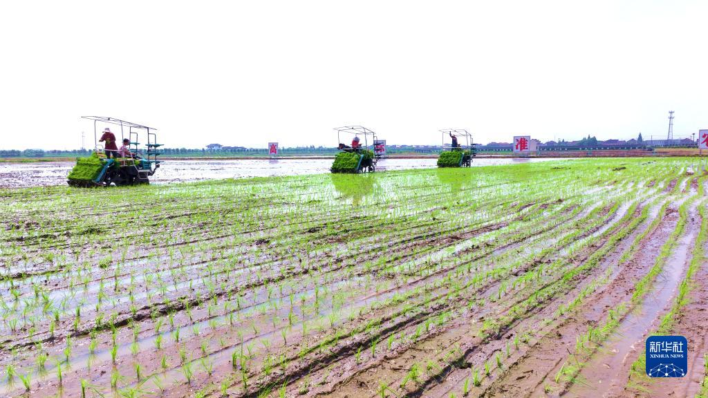 “三夏”時節,多地農民搶抓農時開展水稻種植作業,田間地頭一片農忙景象。新華社發(許旭 攝)