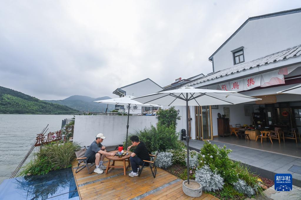 6月12日,游客在慈溪市觀海衛鎮雙湖村的一家茶室喝茶聊天,雙湖村是一個坐擁三山兩湖的江南典型村落,東靠杜湖,南鄰白洋湖。近年來,雙湖村努力打造成為獨具農文融合的古村旅游目的地。該村獲得第七批中國歷史文化名鎮古村、浙江省美麗宜居村、浙江省美麗鄉村特色精品村、浙江省3A景區村等榮譽。