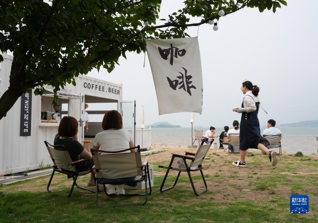 6月12日,人們在強蛟鎮民謠大叔咖啡店看海、喝咖啡。