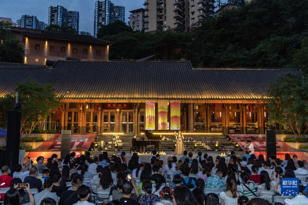 6月10日,在重慶故宮文物南遷紀念館外廣場,人們在欣賞重慶故宮文物南遷紀念館2周年“燭光音樂會”。