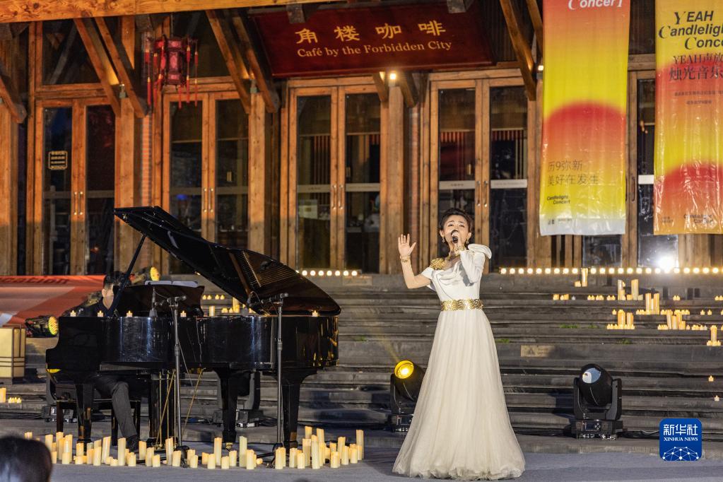 6月10日,在重慶故宮文物南遷紀念館外廣場,歌手在重慶故宮文物南遷紀念館2周年“燭光音樂會”上演唱歌曲。