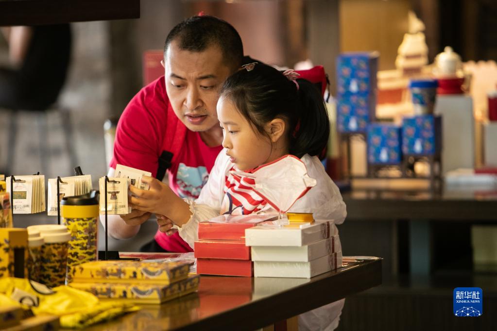 6月10日,在重慶故宮文物南遷紀念館的角樓咖啡店,顧客在選購文創產品。