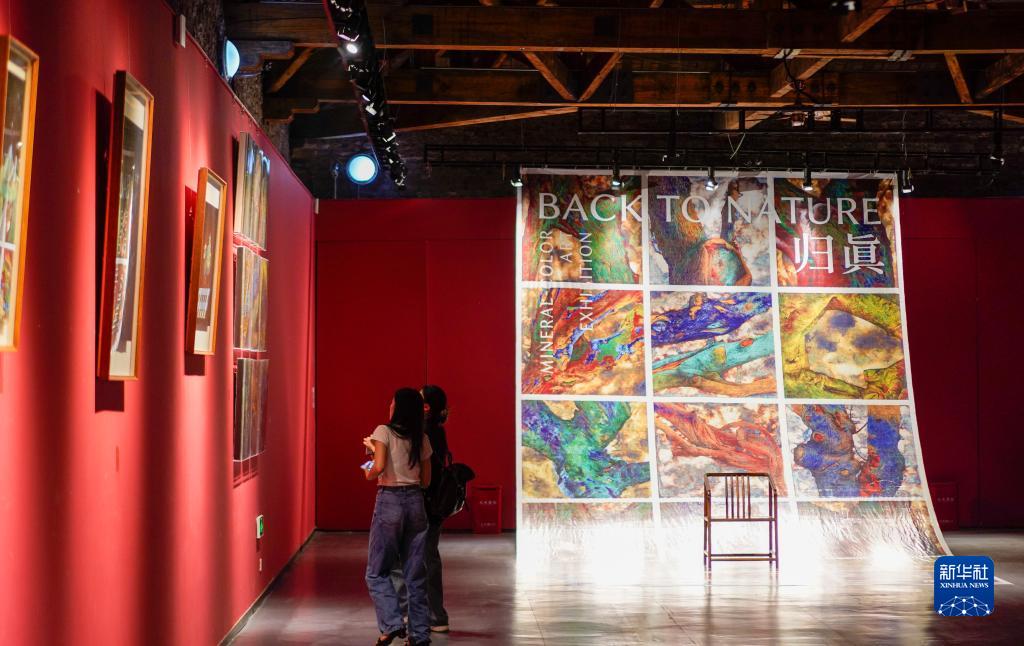 6月9日,重慶故宮文物南遷紀念館的一間展廳內,兩名游客在參觀畫展。