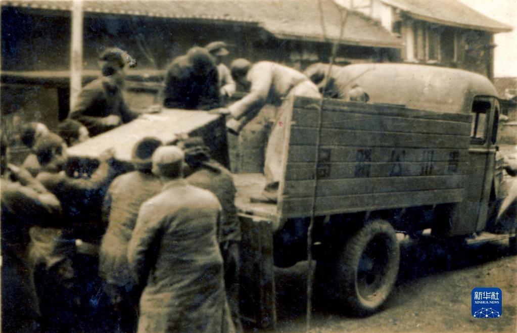 這是1937-1938年,第一批南遷的故宮文物在貴州被卡車運送的場景(資料照片)。