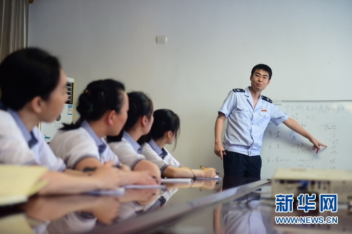 6月13日,黨建聯建活動上稅務人員為企業員工輔導稅惠政策。新華網發(常征 攝)