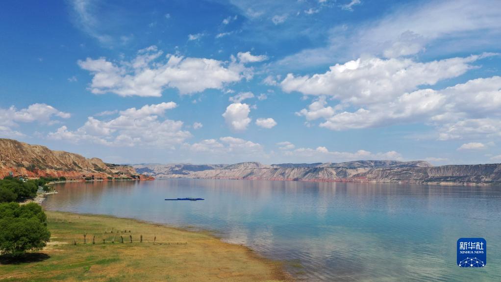 位于甘肅省臨夏回族自治州永靖縣境內劉家峽水庫的黃河三灣碧波蕩漾、岸線蜿蜒,片片小舟在水面搖曳,呈現一幅夏日清新畫卷。