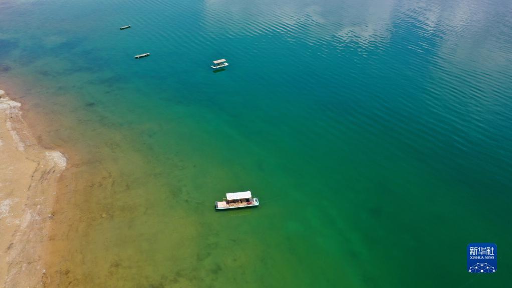 位于甘肅省臨夏回族自治州永靖縣境內劉家峽水庫的黃河三灣碧波蕩漾、岸線蜿蜒,片片小舟在水面搖曳,呈現一幅夏日清新畫卷。