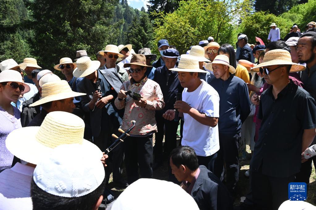 6月13日,在和政縣松鳴巖景區,人們觀看花兒表演。