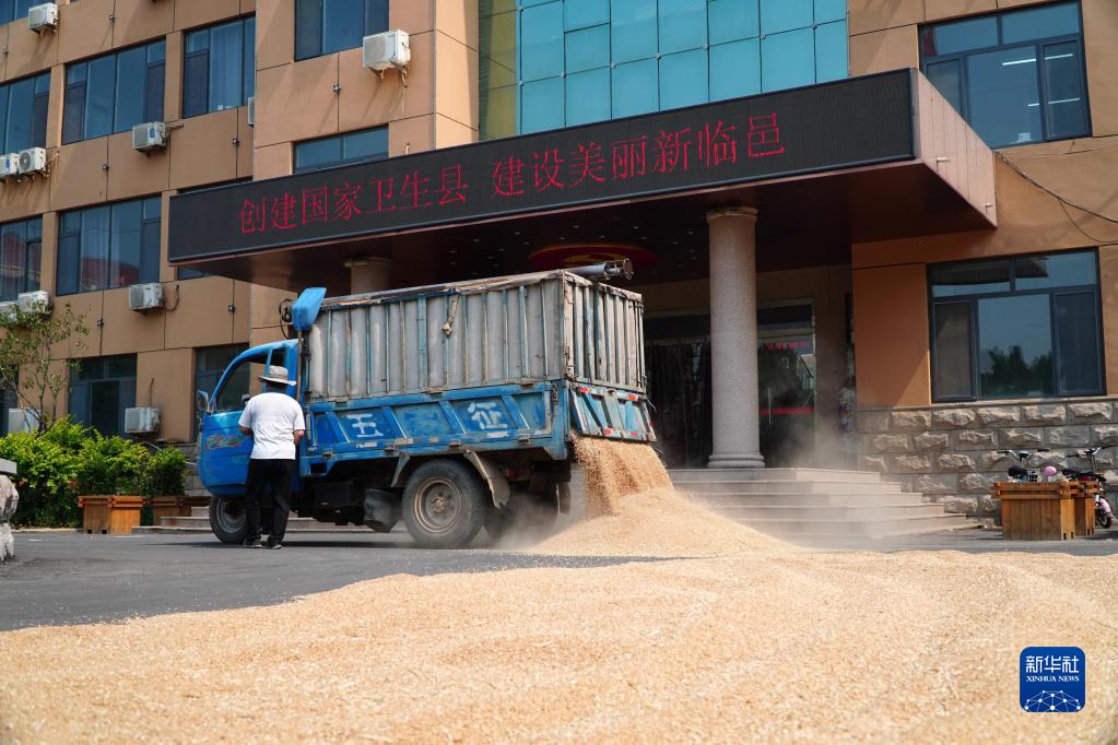 6月13日,農戶在臨邑縣臨邑鎮政府大院曬糧。