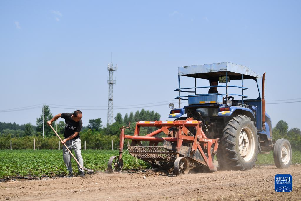 6月13日,在陜西省西安市鄠邑區五竹街道,農戶對田地進行管護。