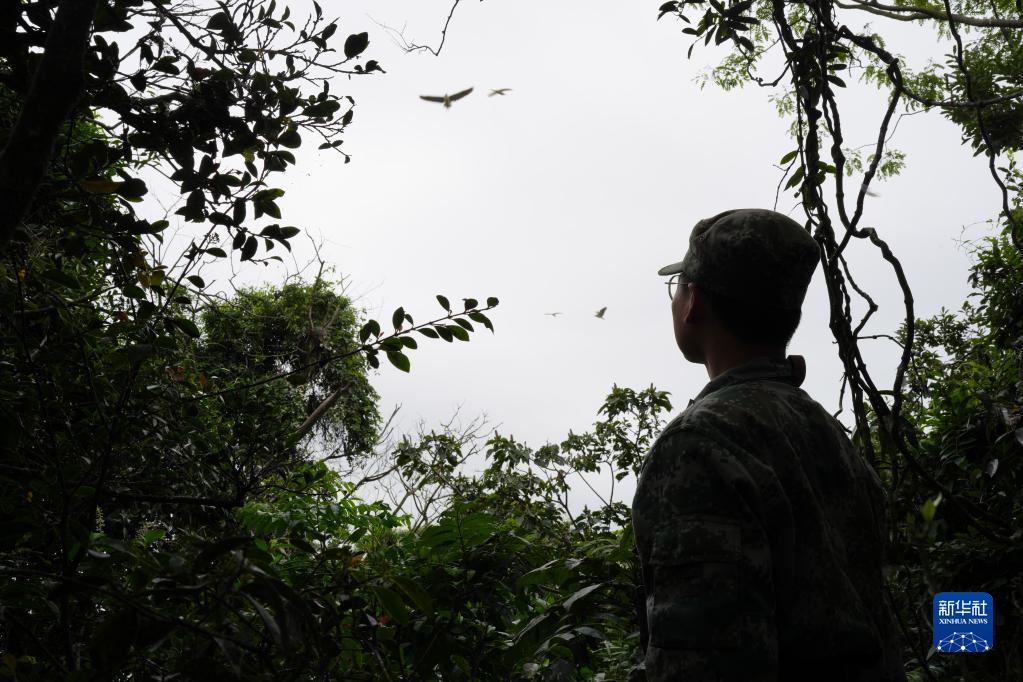 6月13日,海島護鳥隊的成員在一座島上查看鳥類棲息繁育情況。